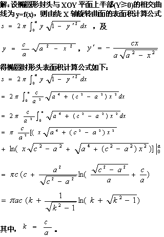 橢圓形封頭(x^2/a^2+y^2/c^2+z^2/c^2=1,ca0,x0)表面積計算方法如下:...